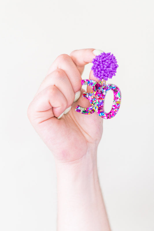 Celebration Birthday Milestone Earrings / Acrylic Birthday Dangles