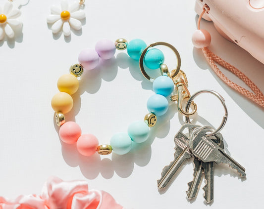 Smiley Silicone Beaded Keychain / Stretch Wristlet Keychain
